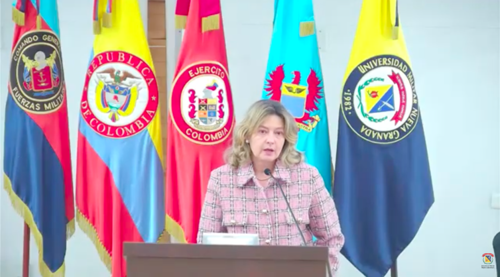 La Dra. Virginia Sánchez se refirió al trabajo adelantado en el marco de la cooperación internacional entre Campus Iberus y la Universidad Militar Nueva Granada (UMNG), destacando la labor académica desarrollada por las profesoras Melba Luz Calle y Déborah Presta, quienes lideran el seminario. En su intervención explicó el sentido y alcance de las dos actividades que se proyecta desarrollar a partir de 2026 en el marco de esta cooperación académica: el Ciclo Académico Virtual Binacional “Mujeres, Paz y Desarrollo Sostenible” y la Mesa Técnica Internacional de Validación Académica del Certificado de Comunidades Constructoras de Paz y Desarrollo con enfoque de género, iniciativas orientadas a fortalecer el intercambio académico y la proyección internacional de las acciones de formación e investigación en torno a la paz, el desarrollo territorial y el liderazgo de las mujeres.