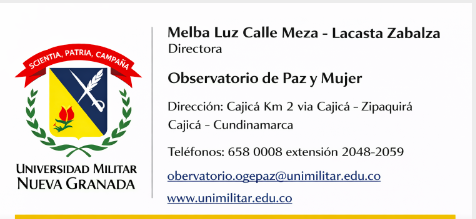La sesión fue coordinada y moderada por la profesora Melba Luz Calle Meza, directora del Observatorio de Paz y Mujer, quien inició el encuentro presentando dos proyectos que impulsa actualmente el Observatorio de Paz y Mujer de la Universidad Militar Nueva Granada, de una parte el proyecto de cooperación internacional al desarrollo “El Silbo Apacible. Un llamado al corazón”, iniciativa desarrollada en colaboración con la Universidad de Lleida (Campus Iberus) y cuya investigadora principal Déborah Presta Novello fue invitada especial al seminario.